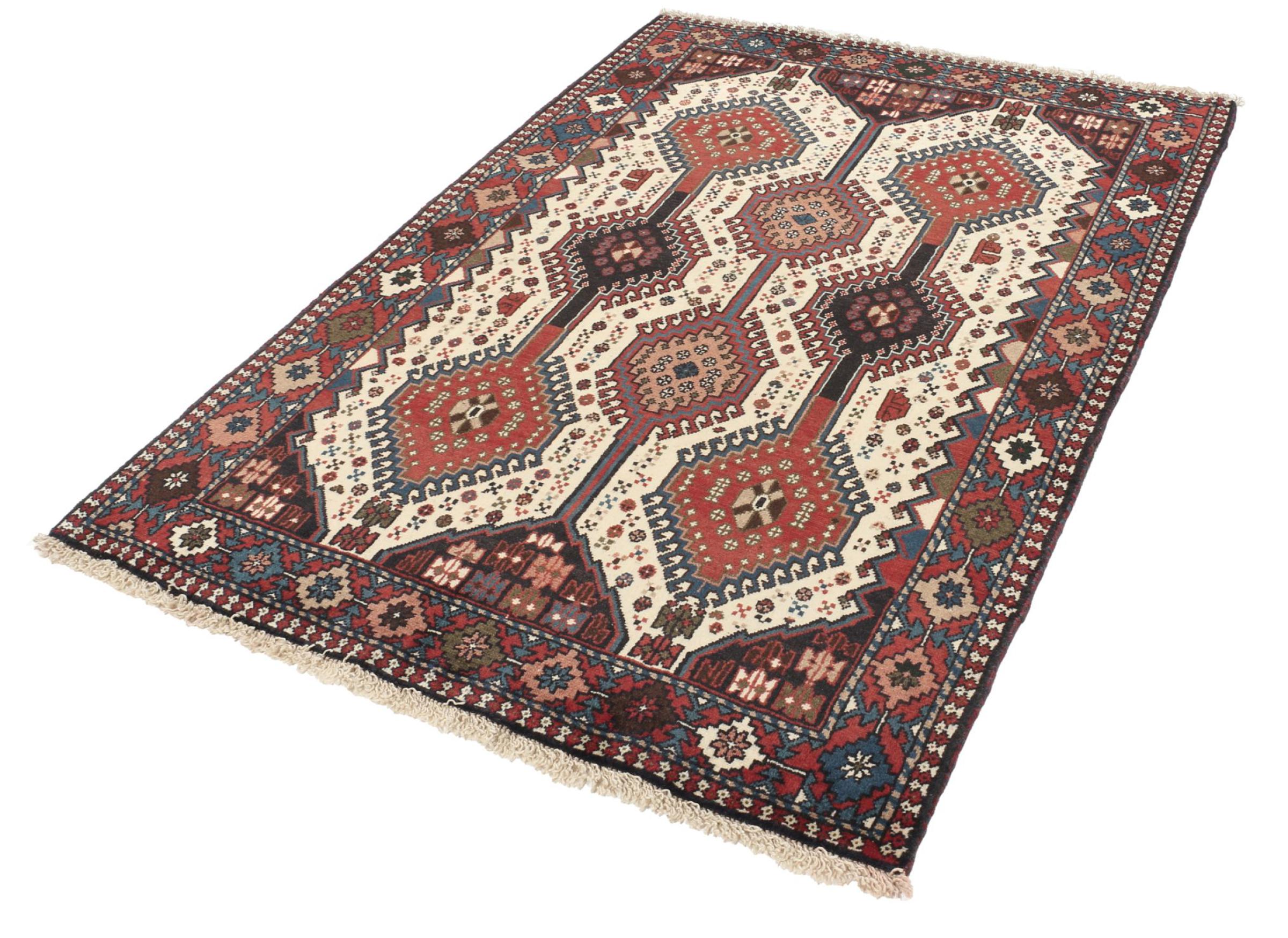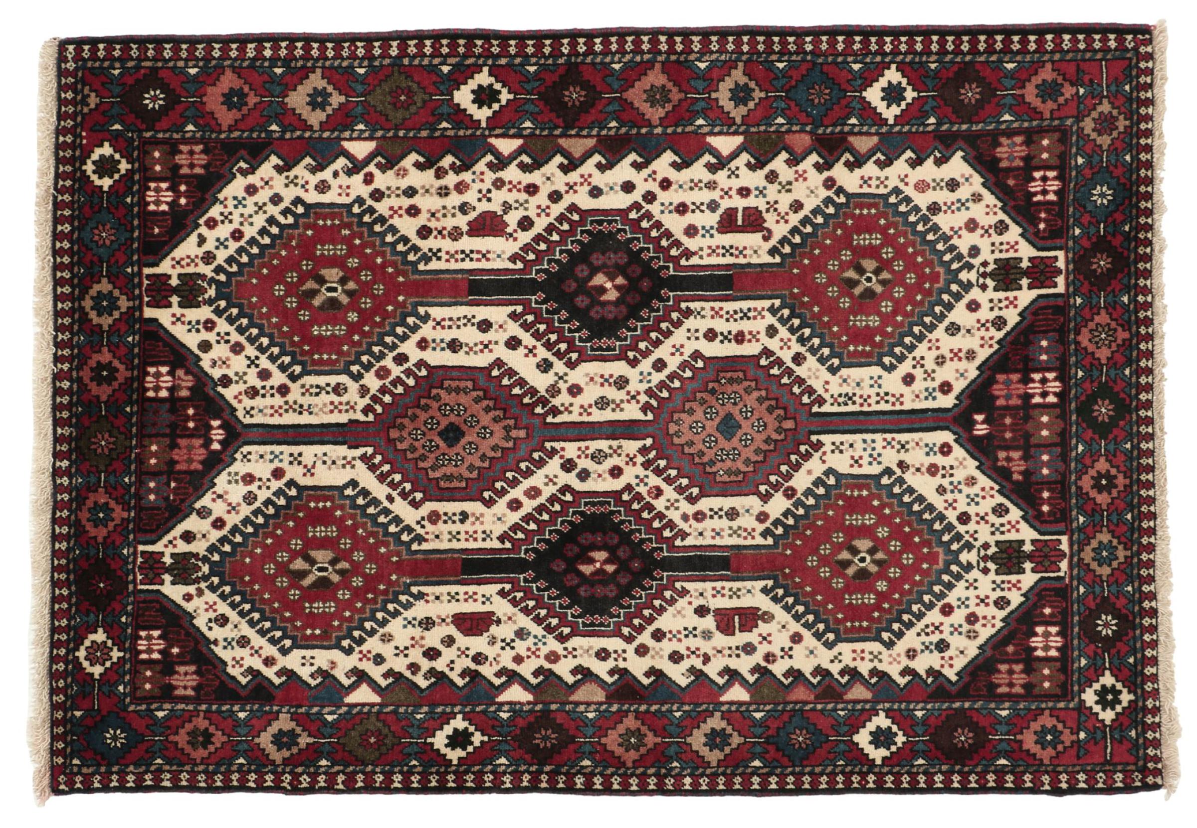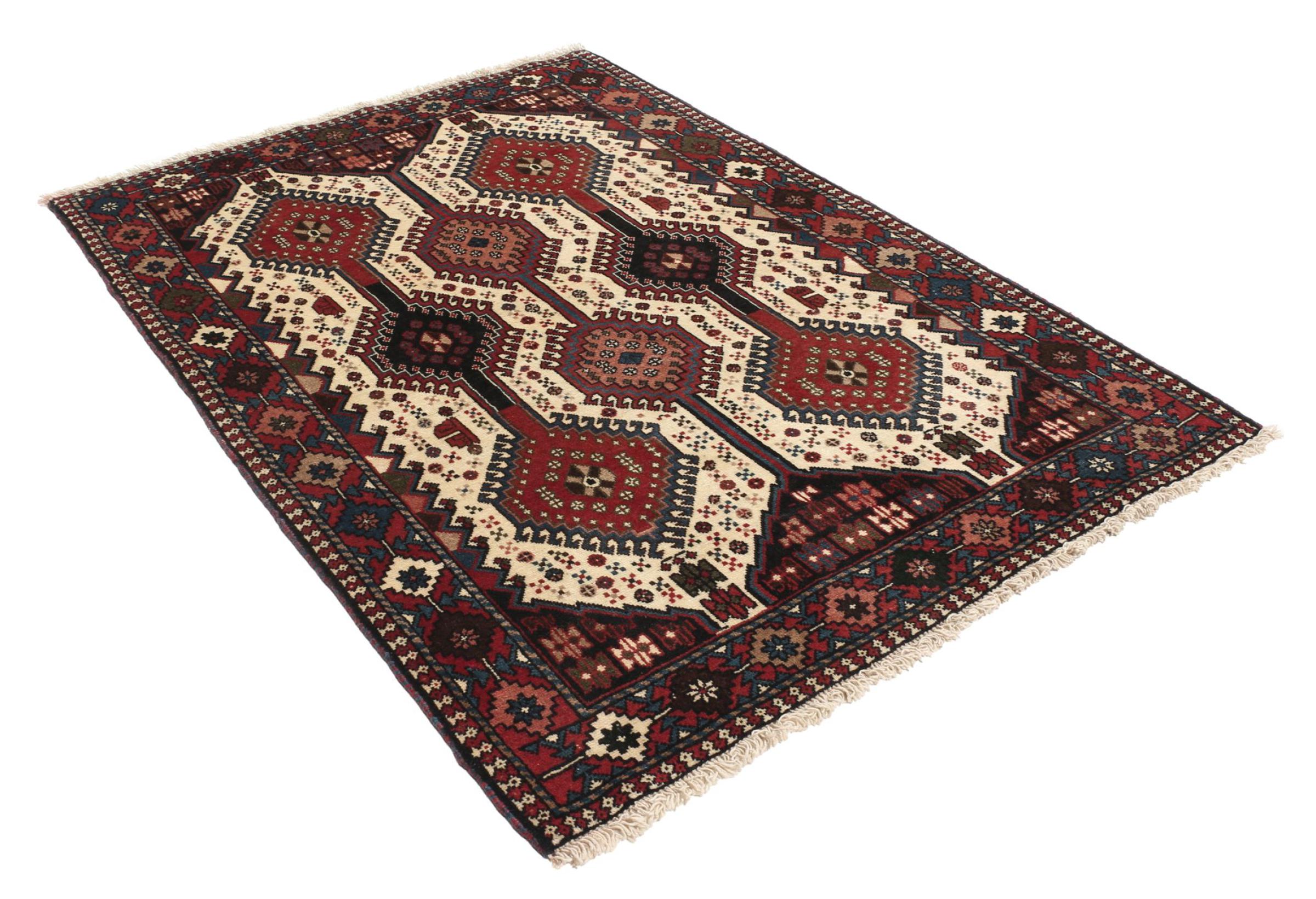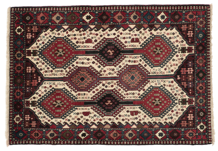 Ce tapis appartient aux tapis de village et de nomade d'Iran, anciennement la Perse. Ce type de tapis est noué à la main dans les petites villes et les villages selon l'ancienne tradition. Même les nomades nouent encore des tapis persans en plein air. Les tapis sont noués sans schéma et entièrement à partir de la tête. Ils se caractérisent par des ornements classiques, qui sont disposés en motifs droits et géométriques. Grâce à leur origine culturelle et traditionnelle, ces tapis ont un caractère unique qui incarne la Perse ancienne.