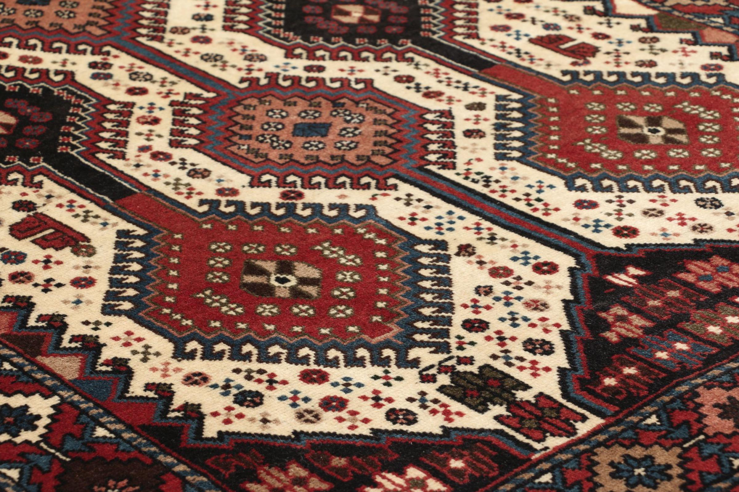 Ce tapis persan traditionnel noué à la main fabriqué à Yalameh est une splendide représentation de son groupe. Comment pourrait-il exister, si ce n’est avec des meubles classiques? Il est très certainement une véritable fête pour les yeux.