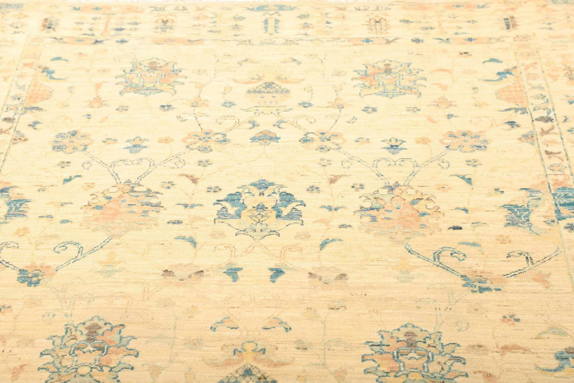 Ce tapis moderne Ziegler a été tissé avec des couleurs et des motifs modernes au Pakistan, à la main, et représente une véritable source d‘inspiration. Posez-le où vous le souhaitez et observez comment il domine l‘espace avec une tendance moderne.