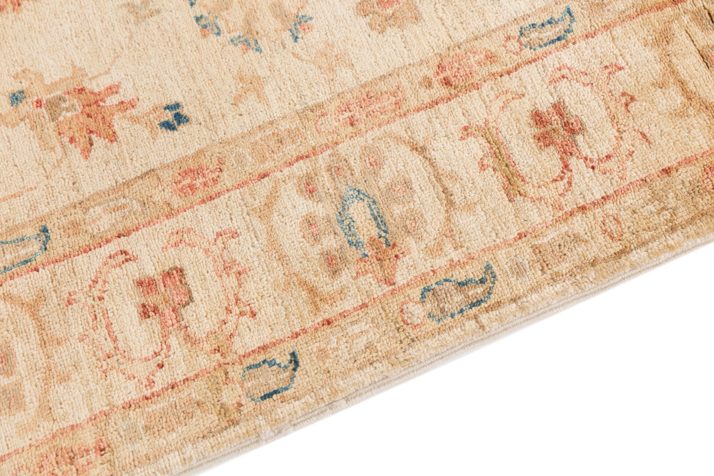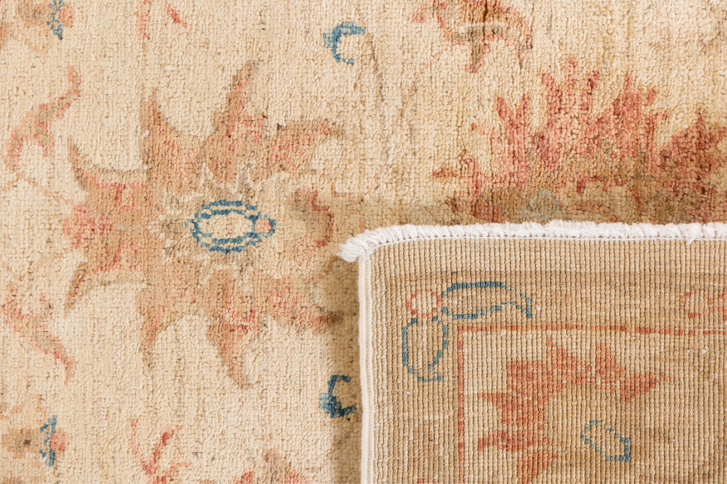 Ce tapis Ziegler Farahan est fait principalement avec de la laine de haute qualité, noué à la main au pakistan. Les méthodes de traitement utilisées permettent de donner naissance à une splendide patine moderne et de style ancien, avec des couleurs discrètes.