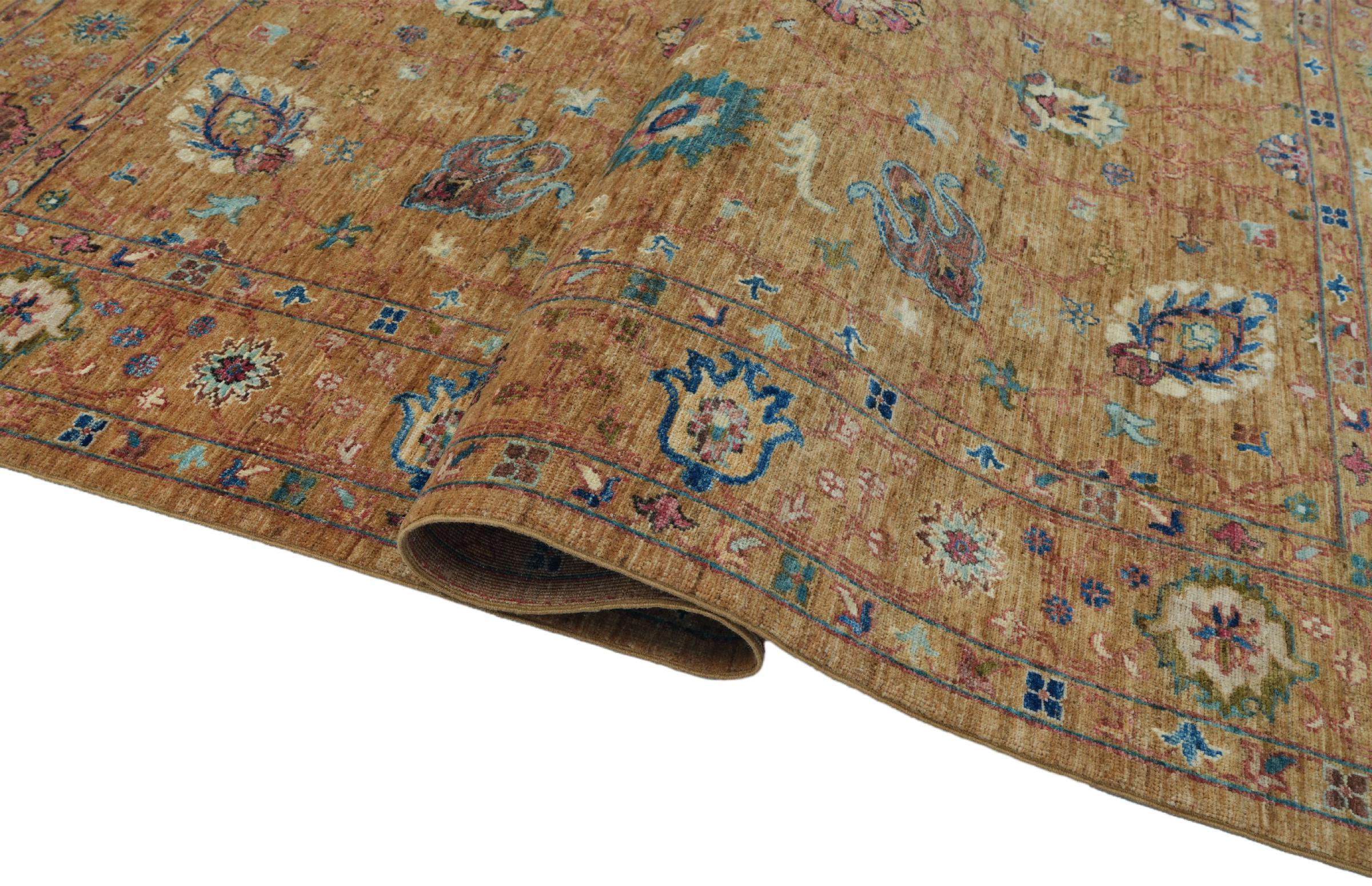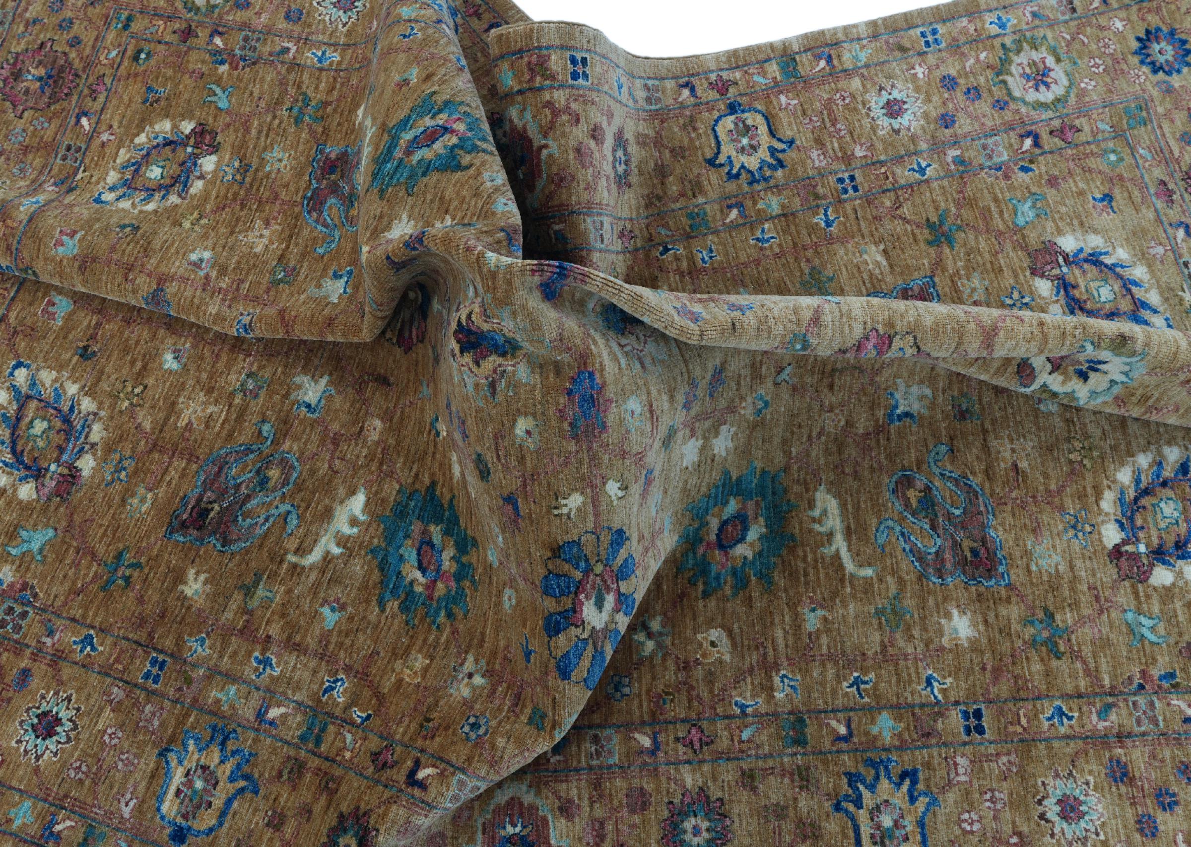 Ce tapis Ziegler Farahan est fait principalement avec de la laine de haute qualité, noué à la main au pakistan. Les méthodes de traitement utilisées permettent de donner naissance à une splendide patine moderne et de style ancien, avec des couleurs discrètes.