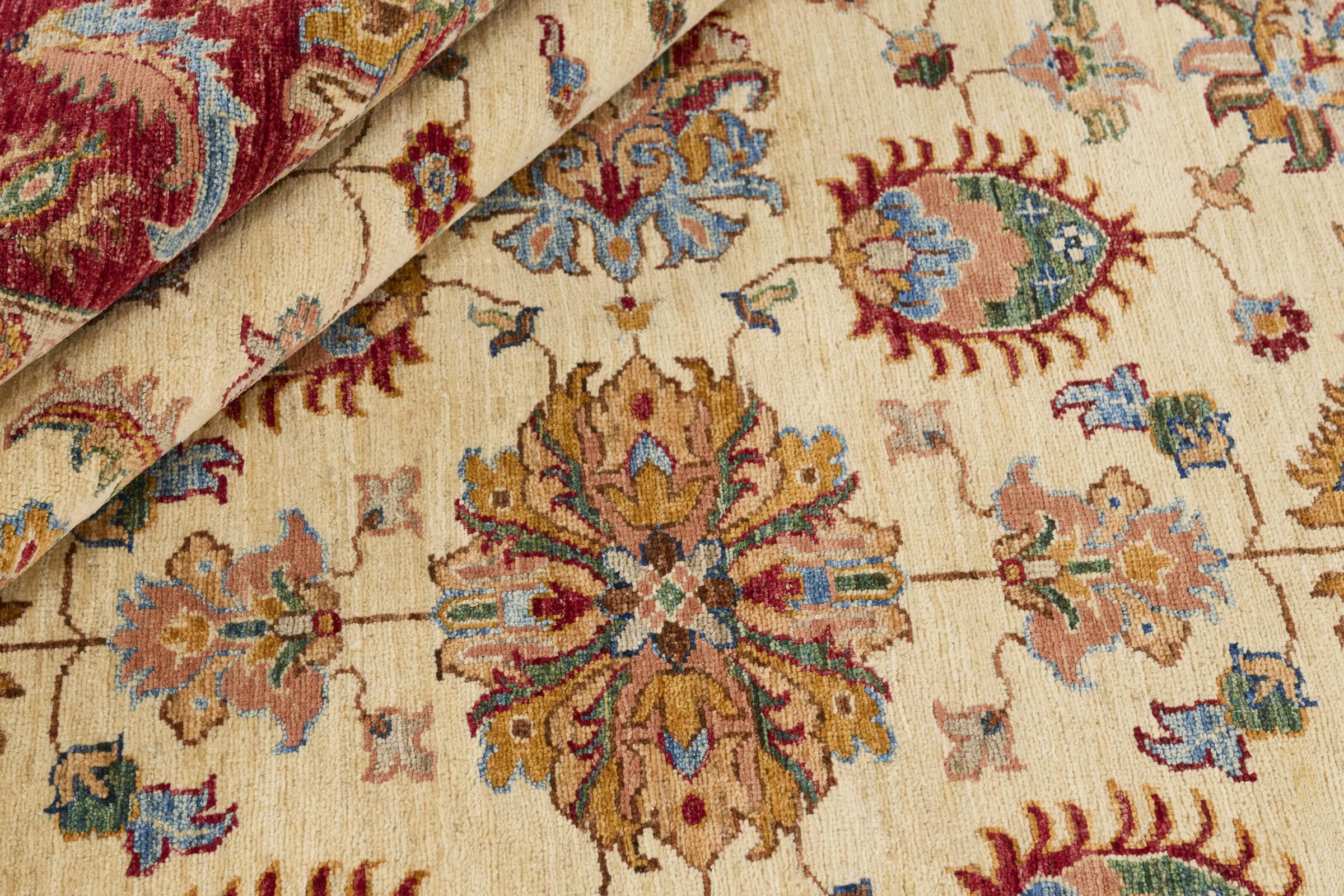 Ce tapis Ziegler Farahan est fait principalement avec de la laine de haute qualité, noué à la main au pakistan. Les méthodes de traitement utilisées permettent de donner naissance à une splendide patine moderne et de style ancien, avec des couleurs discrètes.