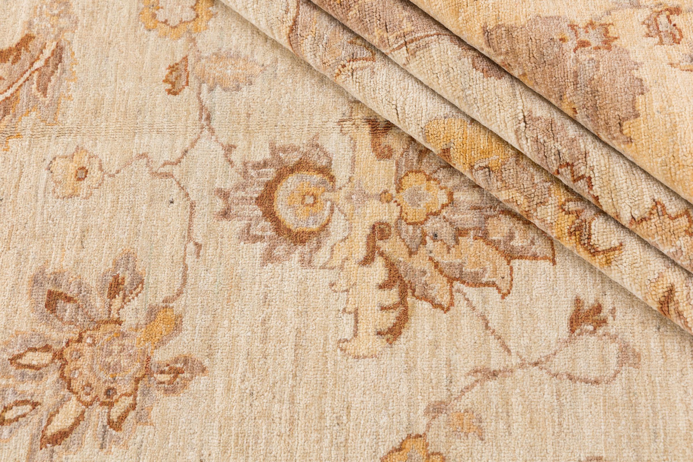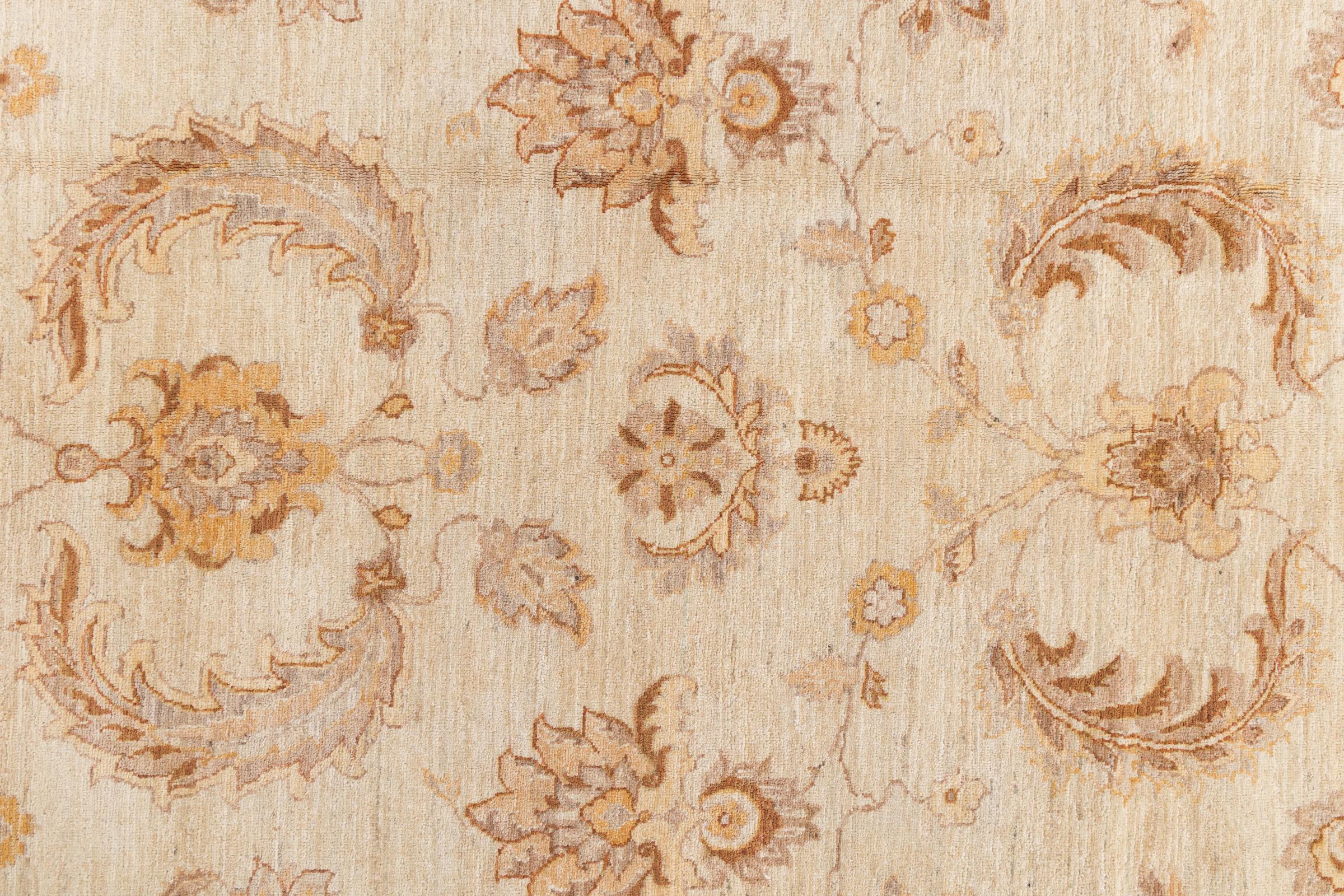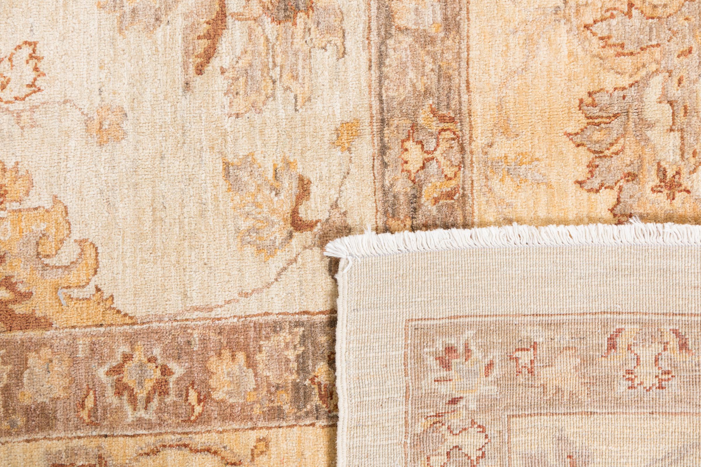 Ce tapis Ziegler Farahan est fait principalement avec de la laine de haute qualité, noué à la main au pakistan. Les méthodes de traitement utilisées permettent de donner naissance à une splendide patine moderne et de style ancien, avec des couleurs discrètes.