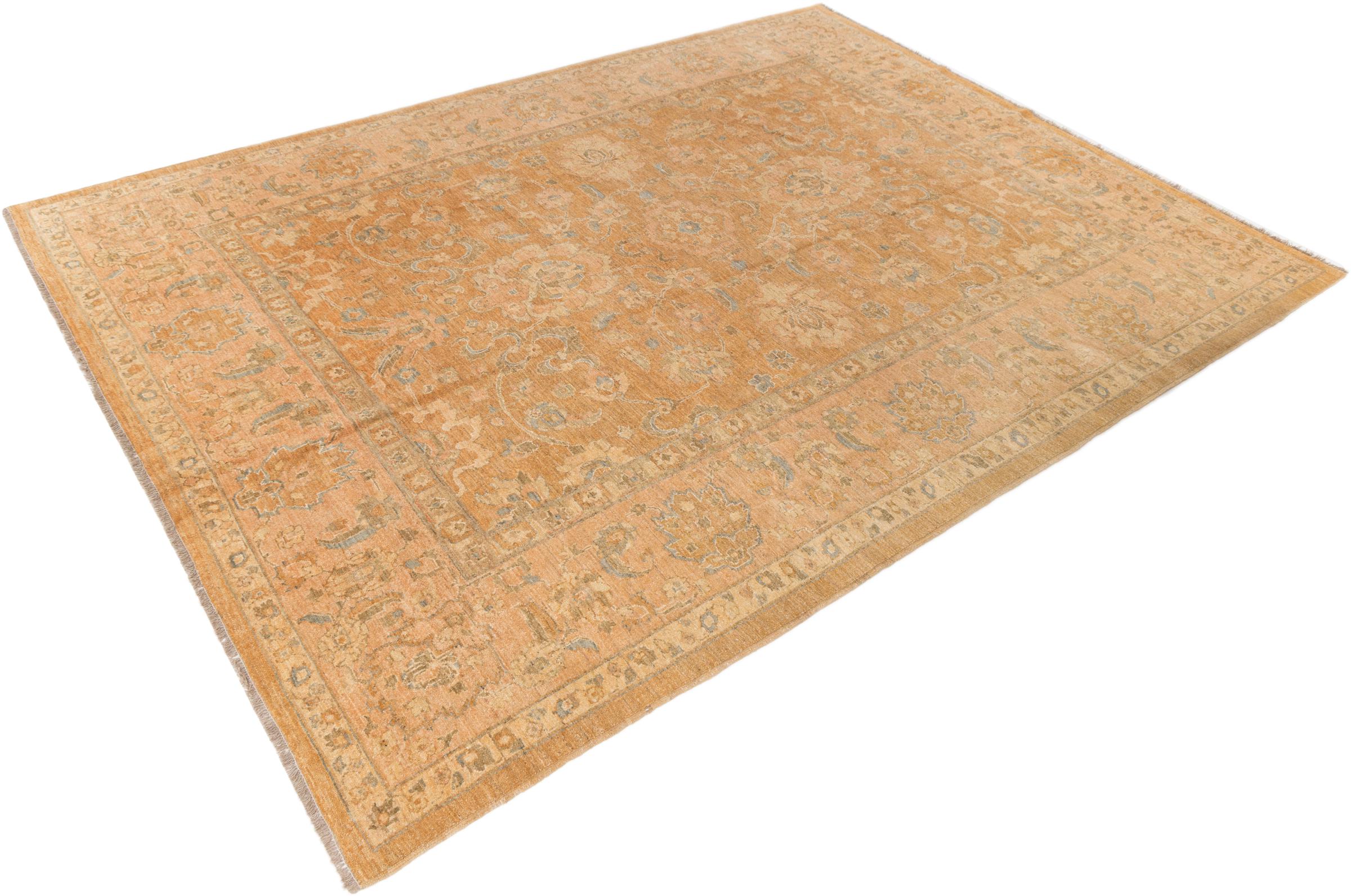 Ce tapis Ziegler Farahan est fait principalement avec de la laine de haute qualité, noué à la main au pakistan. Les méthodes de traitement utilisées permettent de donner naissance à une splendide patine moderne et de style ancien, avec des couleurs discrètes.
